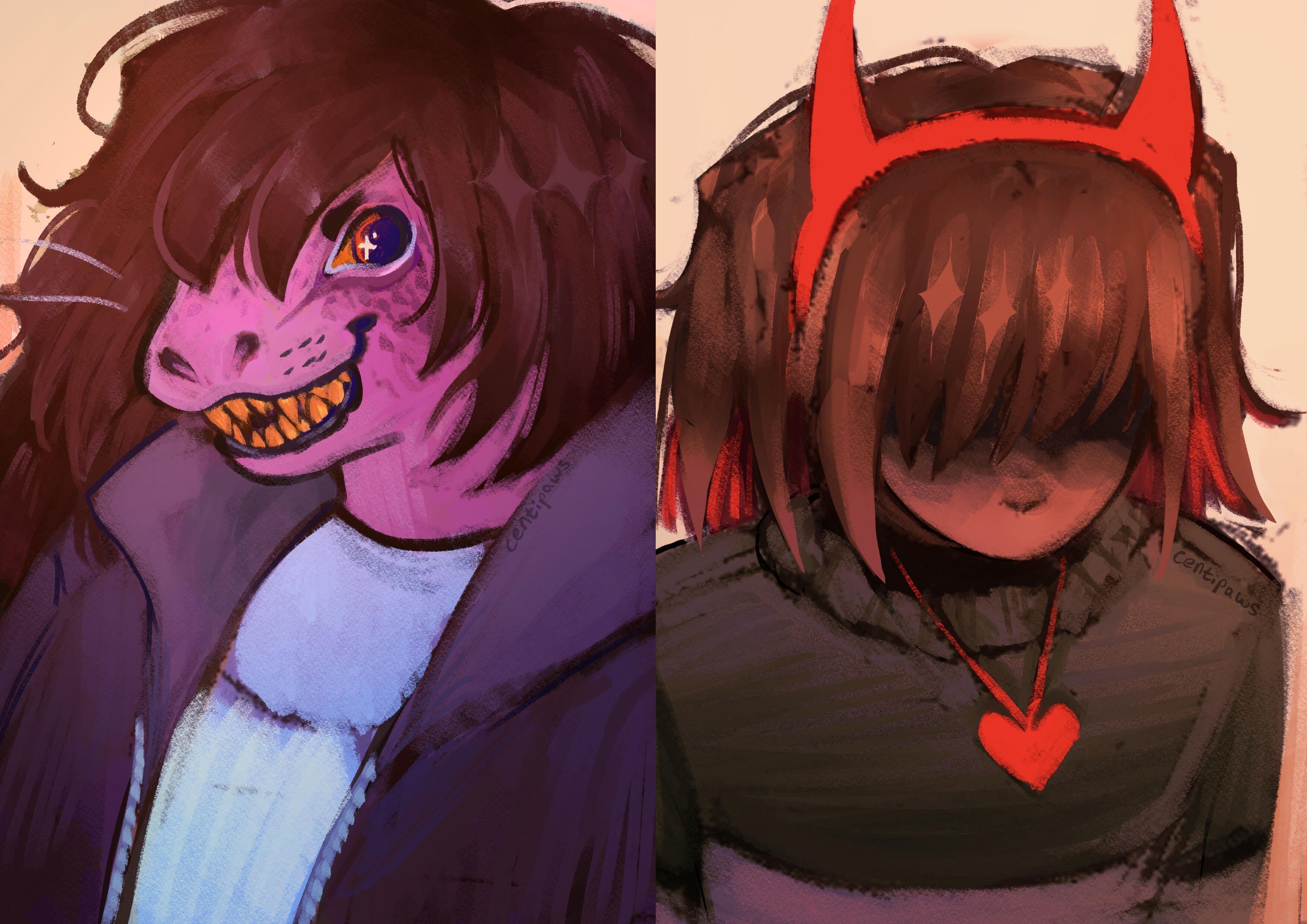 Fanart of Kris Dreemurr and Frisk from Deltarune and Undertale (2025)